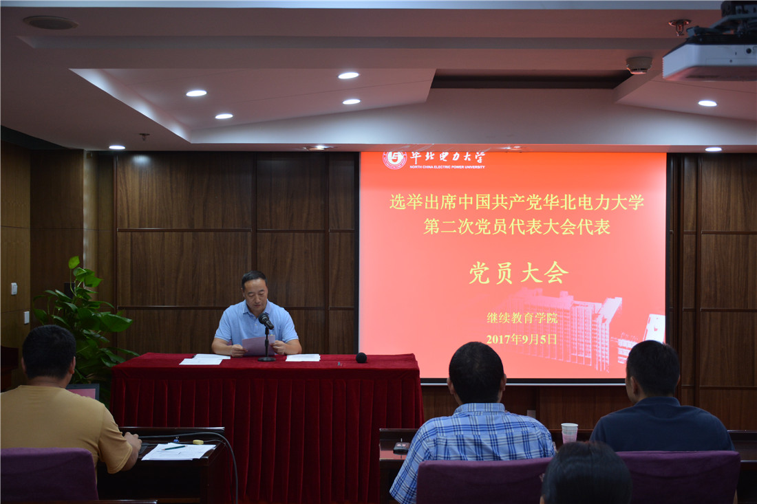 9月5日,继续教育学院党总支在国际交流中心会议室召开了全体党员大会,选举产生出席中共华北电力大学第二次党代会的代表。总支全体党员党员代表参加了会议。